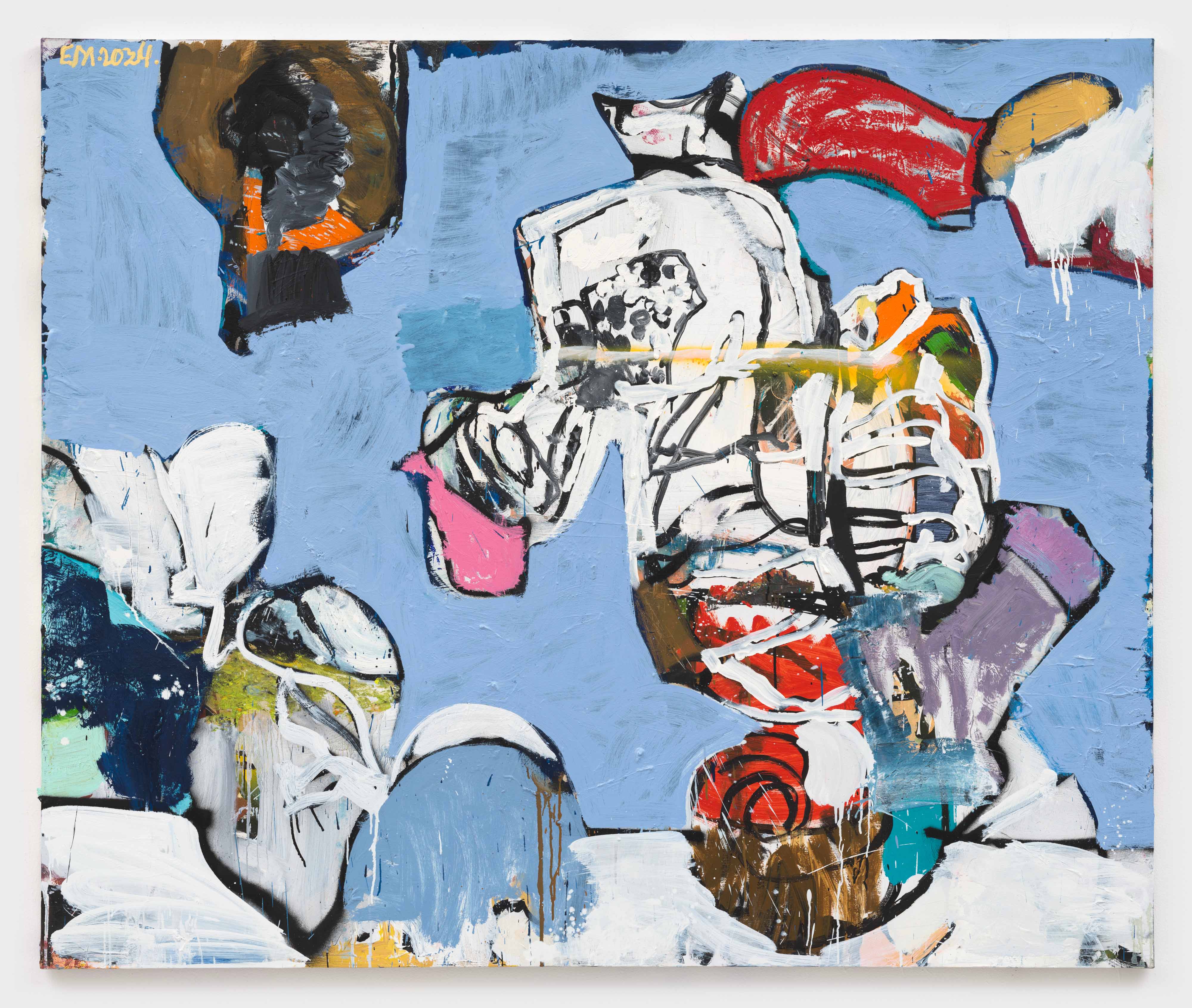 Oil, Acrylic, Spray Paint, and Gesso, on Linen